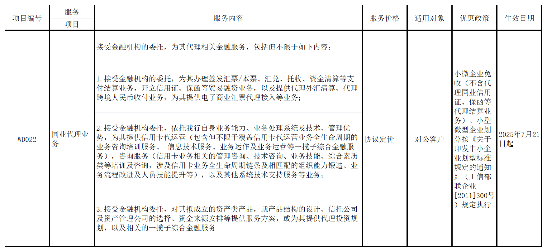 根據業務發展需要,我行擬調整部分服務收費項目,根據《商業銀行服務價格管理辦法》(中國銀監會 國家發展改革委令2014年第1號)的規定,現將調整后的服務項目及服務價格予以公示如下: